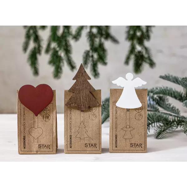 054-27 Enkeli / 054-25 Sydän kynttelikkömansetti, puinen, 2kpl, Star Trading, noortrade