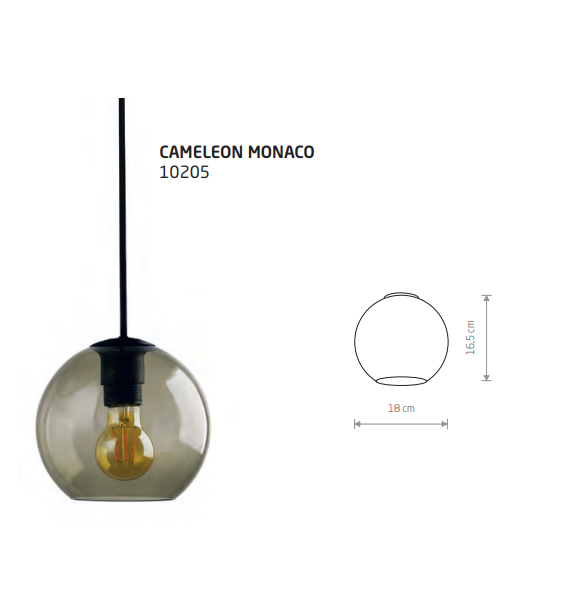 10205 Cameleon Monaco lasikupu 18cm, savunharmaa lasi, Nowodvorski, E.litevalaisimet