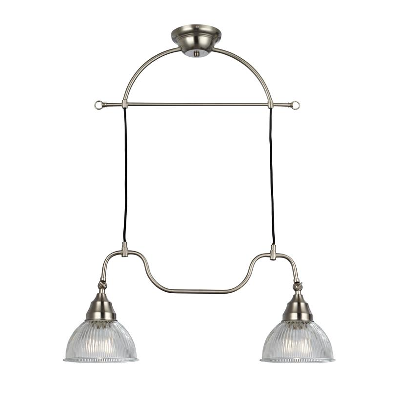 Maalaisromanttinen Åsnen riippuvalaisin sopii hyvin pöydän tai tason päälle. Harjattu teräs runko ja viirutetut kirkkaat lasit sopeutuvat hyvin monenväriseen sisustukseen. Varjostimia voi hieman suunnata varjostimen päällä olevista nivelistä. Johdon pituutta voi säätää. Pituus 68 cm Syvyys 18,5 cm Johdon pituus 120 cm, valaisinosan korkeus 30 cm. Koukku- ja pistotulppakiinnitys. 2 x E27 max 40W, ei sisälly.