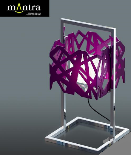 Espanjalaisen Mantran Tokio - pöytävalaisin. Purppuranvärinen moderni muovivarjostin, krominväriset metalliosat. 1xG9 40W, sisältää halogeenin, halogeenin voi tarvittaessa korvata ledillä. Korkeus 30cm Leveys 15,2cm Katkaisimellinen johto. Design: Jose Ignacio Ballester