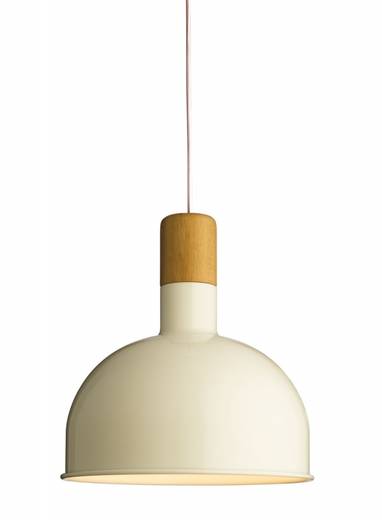 Tyylikäs riippuvalaisin, jossa puu antaa pehmeyttä metallikupuun. Valaisin antaa valon suoraan alaspäin ja näin sopii hyvin pöydän tai tasojen päälle. Kiiltävä valkoinen metallikupu, vaalea puu somiste. Pitkä, valkoinen, 3m kangasjohto. Helppo koukku- ja pistotulppakiinnitys. 1 x E27 max 60W, ei sisälly, suosittelemme led-lamppua. Halkaisija 29cm Varjostinosan korkeus 30cm