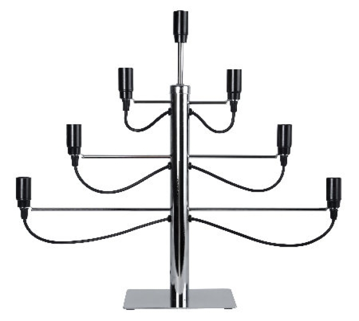 Milano 7- haarainen kynttelikkö tuo klassista tyylikkyyttä tilaan. Krominvärinen metallikynttelikkö mustilla somisteilla. Kynttelikkö tuo huoneeseen Flos 2097 kruunun tyyliä. 7 x E14 max 15W, ei sisällä lamppuja. Erilaiset polttimot tuovat näyttävyyttä kynttelikköön. Yhteensopivat tuotteet välilehdeltä löydät sopivia lamppuja kynttelikköön.