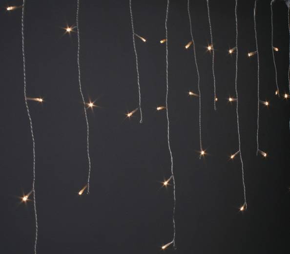 Kirkasjohtoinen räystäsvalosarja lämminvalkoisilla ledeillä. Valo-osan pituus 3m. 72 kpl ledejä eri pituisissa johdoissa, joiden pituus vaihtelee 30 - 63 cm väliltä. Syöttöjohto 5m, muuntaja...