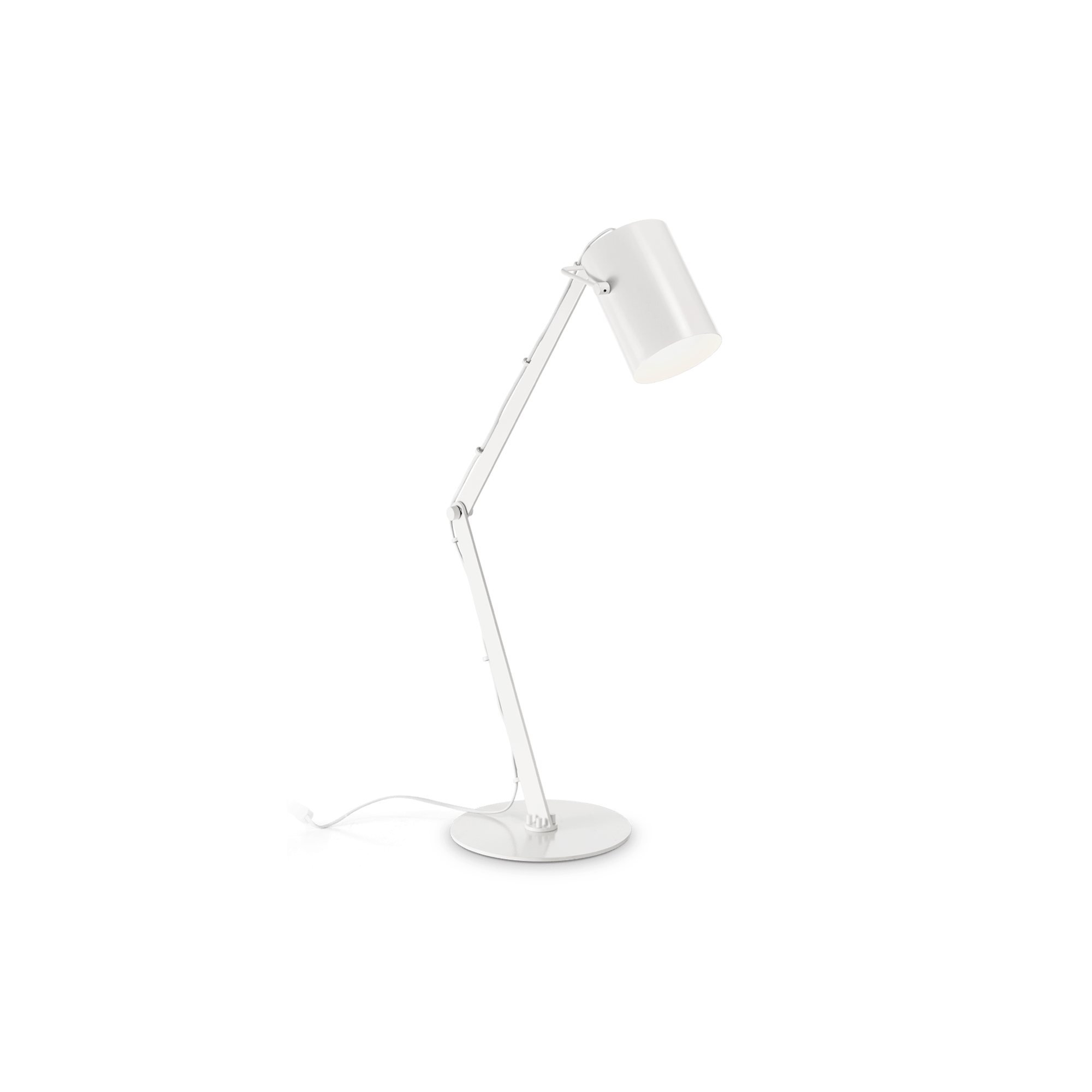 Valkoinen metallivalaisin on säädettävällä varrella ja varjostimella.