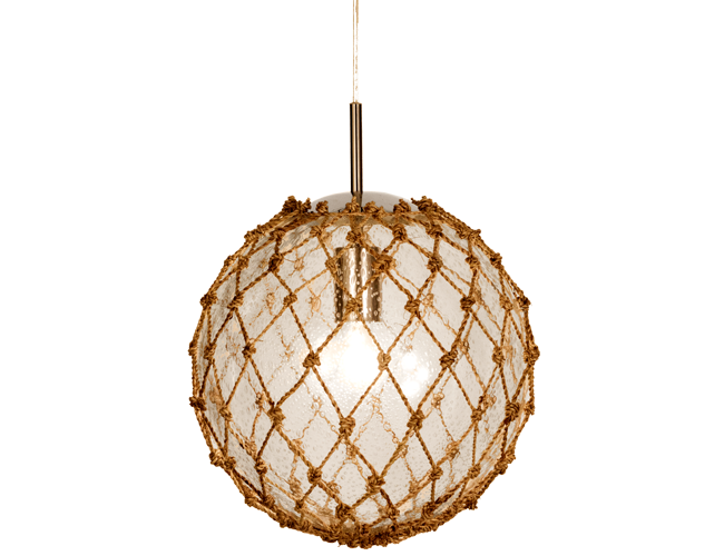 Merihenkeä Marine-riippuvalaisimella! Kirkas lasipallo naruverkon ympäröimänä. Halkaisija 30cm 1xE27 max 60W (ei sisälly), kaikki lampputyypit käyvät tähän valaisimeen. Yhteensopivat tuotteet välilehdeltä löydät sopivat polttimot valaisimeen. Kirkaspintaiset lamput heijastavat naruverkon kuvion seinille! Koukku- ja pistotulppakiinnitys