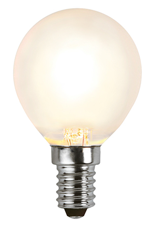 Aivan hehkulampun näköinen ja kokoinen Led-poltin. Mattapintainen lasi. Kokonaiskulutus 2,8W, 200 lumen, vastaa noin 25W hehkulamppua. Kanta E14 Värilämpötila 2700K, lämmin valkoinen. Halkaisija Ø4.5cm Korkeus8.3cm Energialuokka A+ Värintoistoindeksi 80Ra Arvioitu paloaika 25000h Sytytyskertoja 12500 kpl Syttyy heti täyteen kirkkauteen Toimintalämpötila-20° - +40°C° Ei himmennettävä