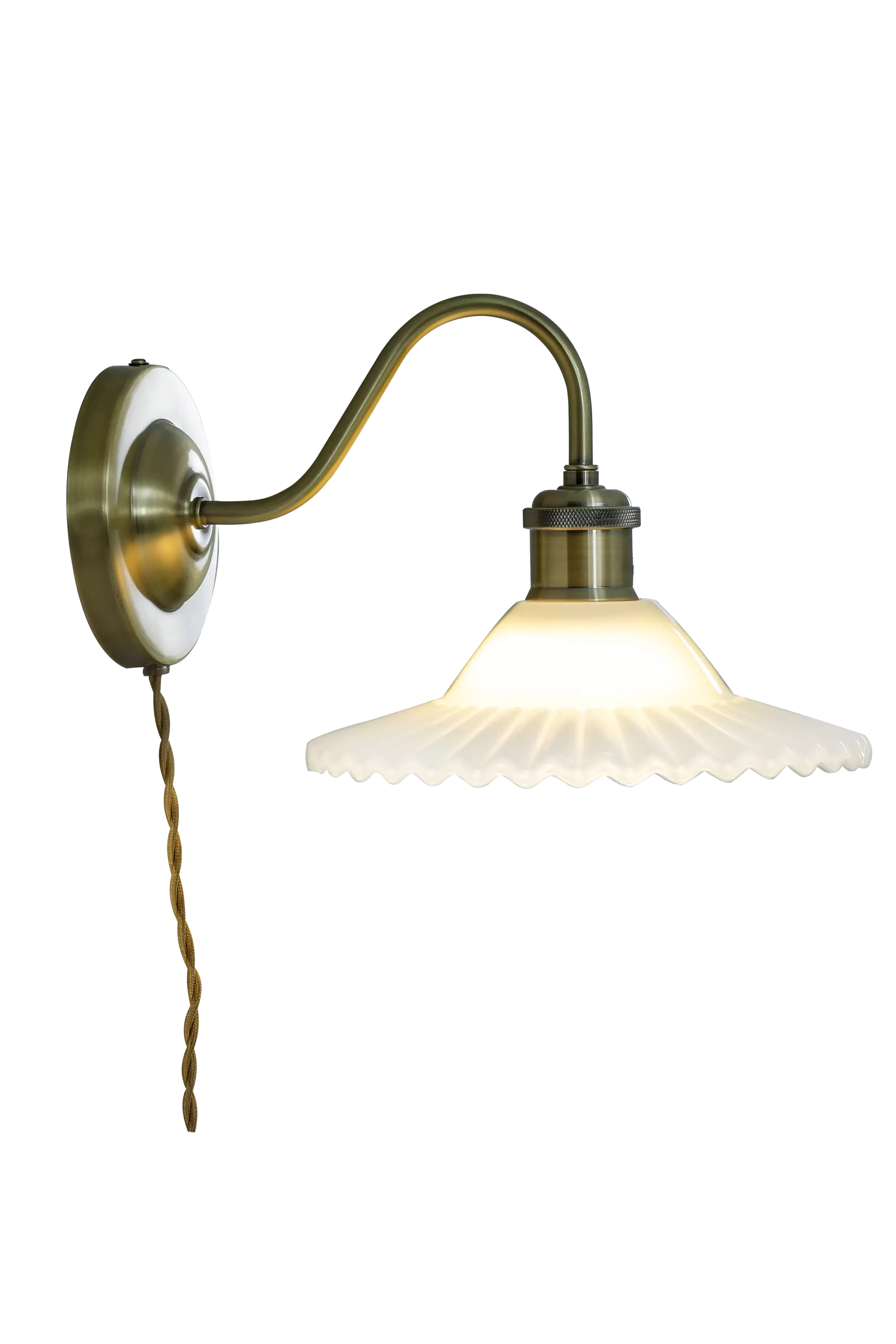 Romanttinen Sofia seinävalaisin tuo vintage-henkeä tilaan. Musta metallirunkoinen valaisin saa pehmeyttä valkoisesta, muotoillusta lasikuvusta. Tyylin viimeistelee kierretty, kangaspintainen johto....