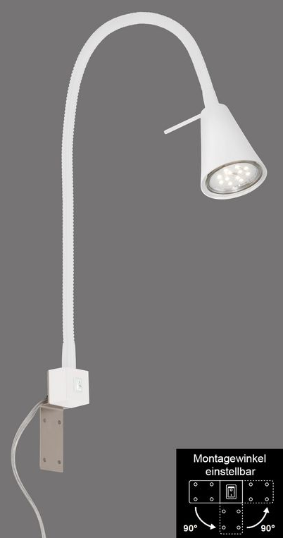 Monikäyttöinen kohdevalaisin antaa tarvittavan lisävalon sängynpäätyyn, työpöydälle, yöpöytään... Valaisimen voi kiinnittää seinään, sängyn päätyyn, hyllyy jne. Kytkin on kätevästi rungossa. Valkoinen metallivalaisin, taipuisa varsi. Pistotulppajohto. Korkeus 40 cm Syvyys 21,7 cm 1 x GU10, sisältää 4W ledin.