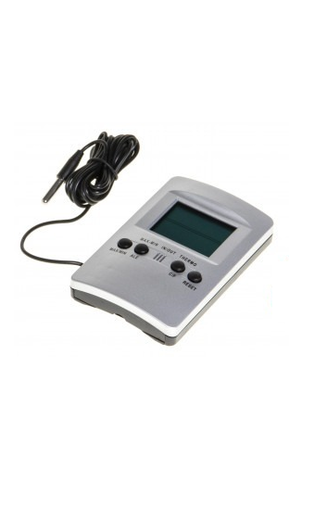 Digitaalinen sisä- ja ulkolämpömittari Korkeus 11 cm Leveys 7,1 cm Syvyys 2 cm Kaksirivinen LCD- näyttö, lämpötilayksikön valinta °C/°F, maksimi-/minimilämpötilojen muisti, sisä ja ulkolämpötilan mittaus, nollaus, pakkashälytin (-1°C-4°C). Käyttöjännite 1,5V, paristotarve 1x AAA, sisältyy. lämpötilan mittausalue sisällä: -20°C - 70°C, ulkona: -50°C - 70°C, näyttö 0,1°C/0,2°F, tarkkuus +/- 1°C/+/-2°F.