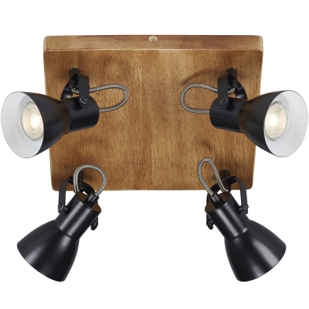 2902-045 Arbo 4-osainen kattovalaisin, musta / puu, 4xGU10, Briloner, E.litevalaisimet - Plafondit - 182750 - 1