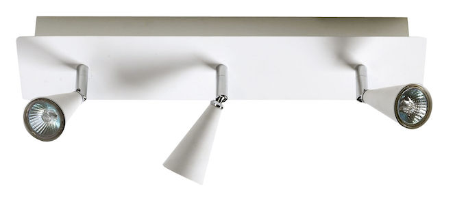 Yksinkertaisen kaunis muotoilu sirolla kohdevalolla. 3 kääntyvää spottia, joista voi suunnata valon sinne, missä sitä eniten tarvitaan. Voidaan asentaa seinälle tai katolle. Valkoinen metalli. 3xG4 20W 35mm 12V (sisältyy) Pituus 35 cm Leveys 9 cm Kiinteä asennus.