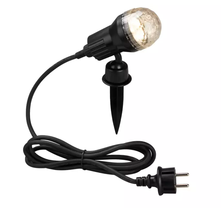 Musta muovirunkoinen spottivalaisin on varustettu 2m johdolla, jossa on