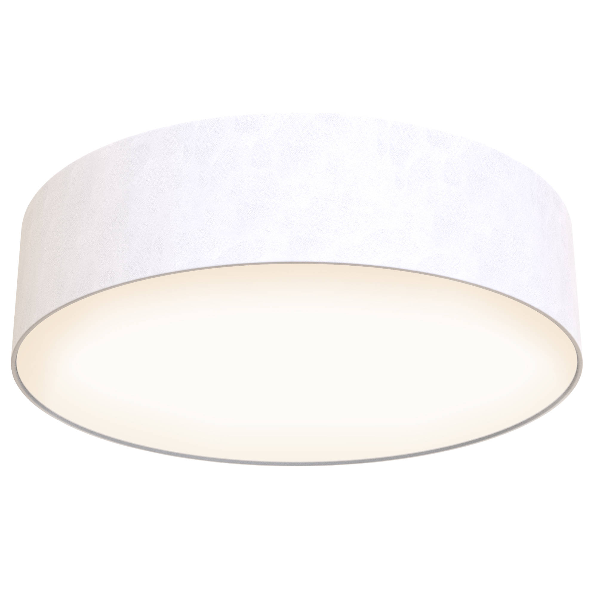 Fabric plafondissa kangaspintainen varjostinreunus pehmentää läpitulevan valon.