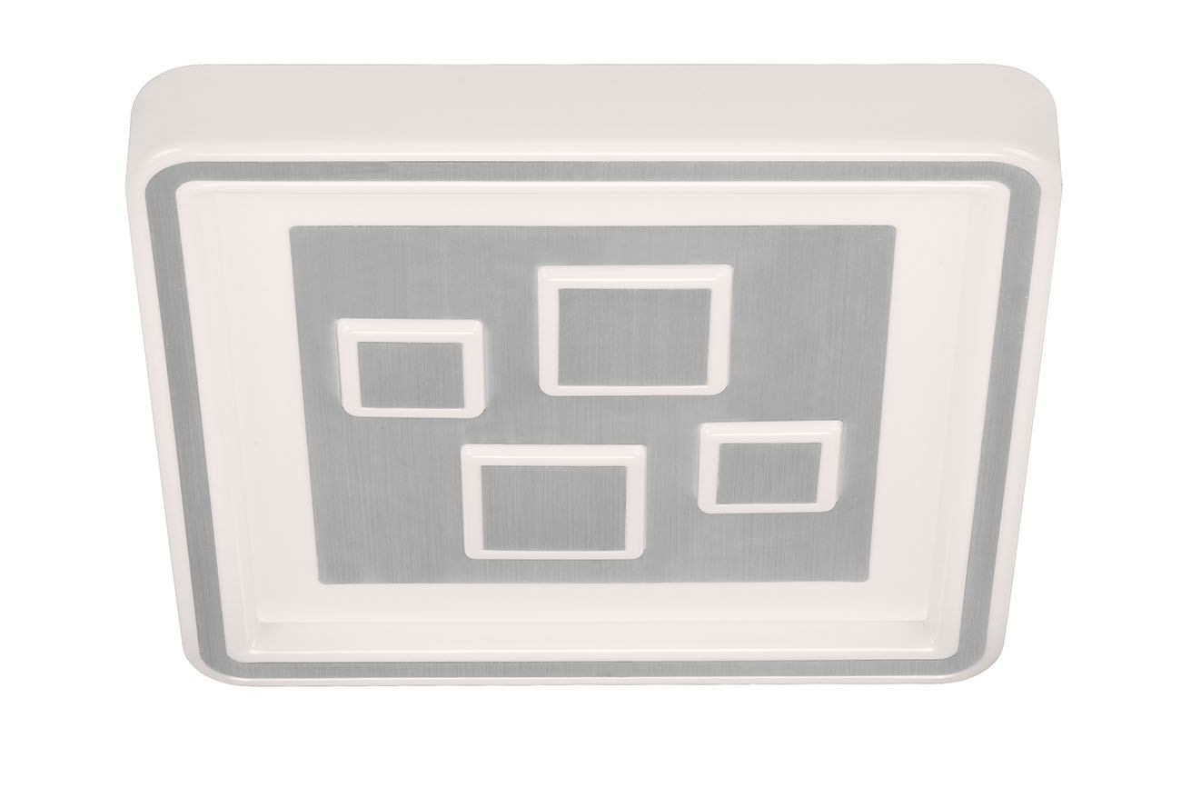 Moderni led- plafondi kaukosäätimellä. Valaisimeen tuo ulkonäköä alumiinisomisteet. Valkoinen akryylikupu, metallipohja. Kiinteä 42W led, max 4000lumen, 3000K-6500K. Mukana tulevalla kaukosäätimellä saa valotehon säädettyä sekä vaihdettua mieluisan värilämpötilan. Leveys 49 cm Korkeus 8,7 cm Kiinteä asennus.