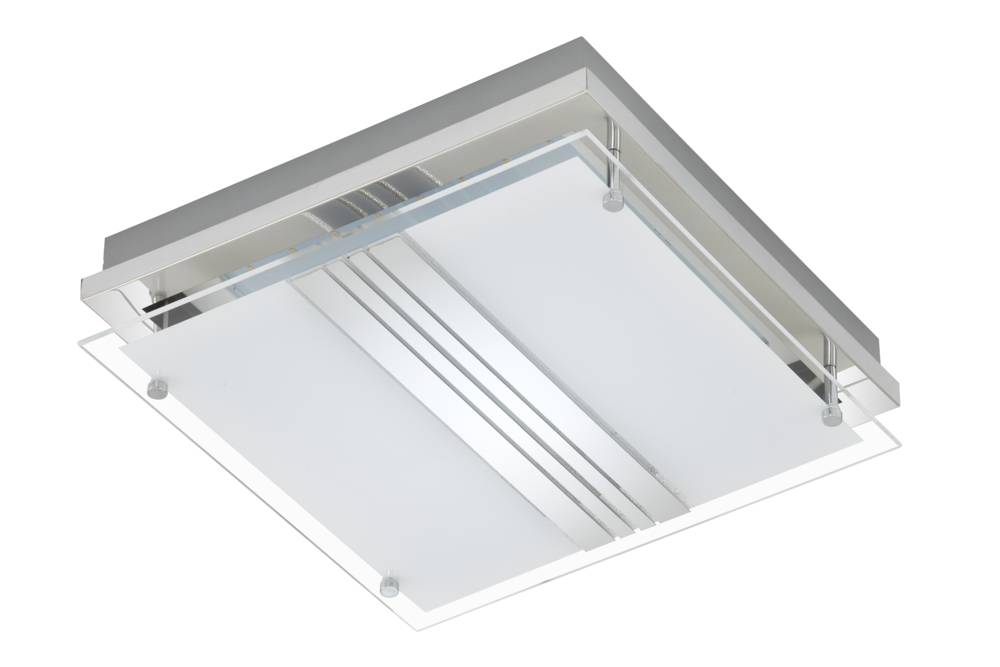 Moderni, neliönmuotoinen plafondi, jonka saa palamaan kolmella eri teholla tavallisella katkaisijalla. Krominvärinen metallipohja ja lasilevy on matta harmaa kromisilla somisteilla. Leveys 40 cm...