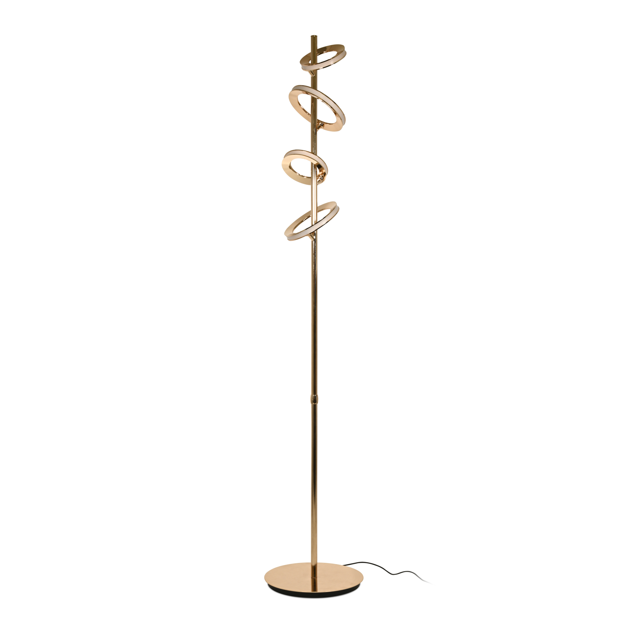 Tyylikäs Marry Me lattiavalaisin tuo tilaan juhlavasti tehokkaan valon. Valaisimen runko on kiillotettua messinkiä ja valonlähteenä ovat sormusmaisiin renkaisiin sijoitetut LED-elementit. Marry Me - lattiavalaisin on ihastuttava katsottava sekä valo päällä että pois päältä. Korkeus 155 cm Jalustan halkaisija 28 cm Kiinteä 25W led, 3000K. Kiiltävä messinki metallirunko ja valkoinen akryyli led-valon päällä. Kytkin johdossa.