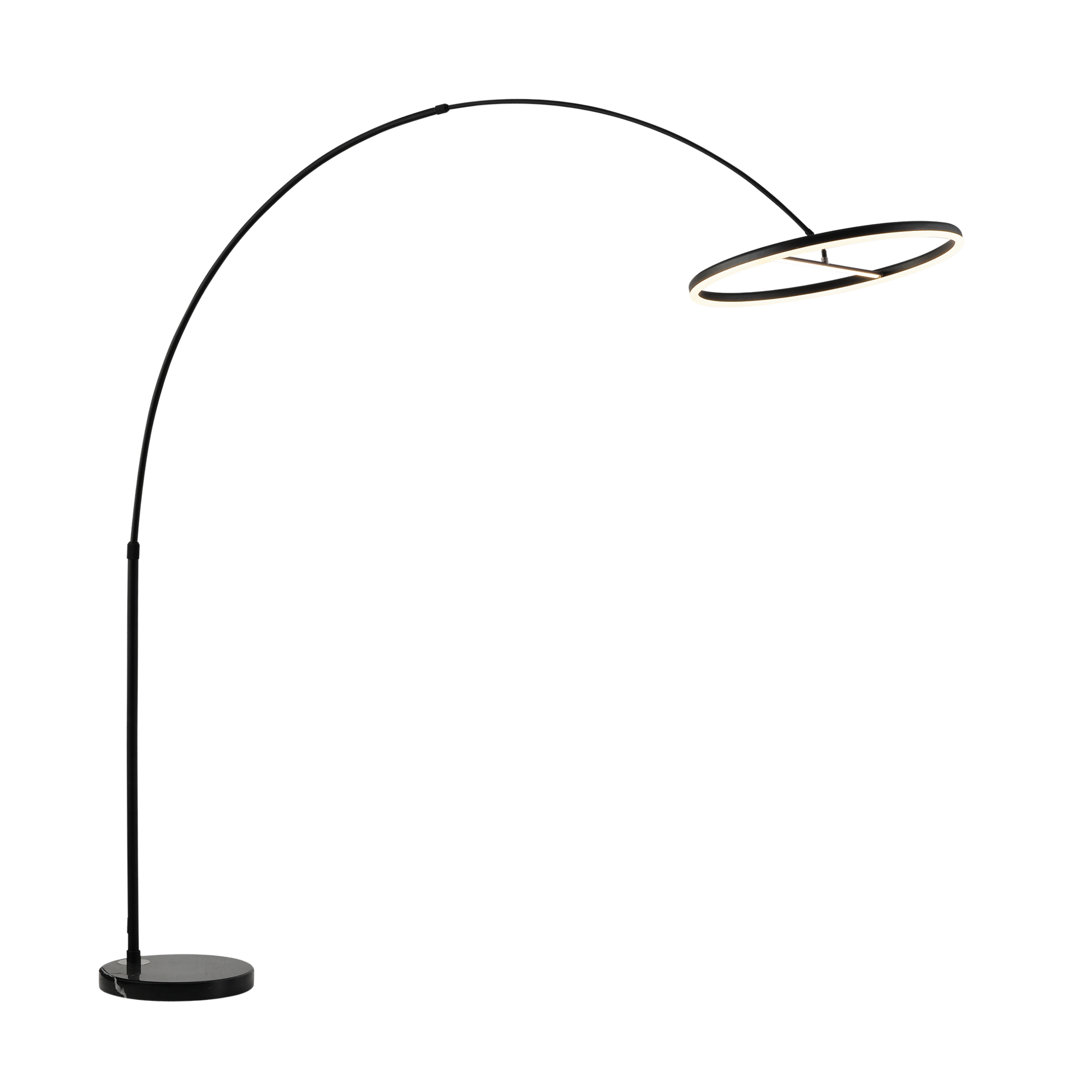 Lounge LED on yksinkertaisuudessaan näyttävä lattiavalaisin ja sopii muiden modernien led-valaisimien seuraksi. Lounge Led lattiavalaisin tuo tehokkaan yleisvalon isompaankin tilaan ja oikean tunnelman voit hakea johdossa olevasta himmentimestä. Pitkä ja korkealle kaartuva varsi mahdollistaa lattiavalaisimen sijoittamisen siten, että kaaren ali mahtuu kävelemään. Kaaren päässä on moderni LED- rengas ja valoyksikkö kääntyy sekä nivelen että akselin avulla, jolloin valon voi kohdistaa useilla tavoilla. Jalustana on musta marmorilaatta, joten valaisin pysyy tukevasti sijoillaan. Korkeus 215 cm Syvyys 200 cm Valorenkaan halkaisija 60 cm Kiinteä LED 40 W, 3000K. Mattamusta runko metallirunko, musta marmorijalusta. Himmenninkatkaisija johdossa.