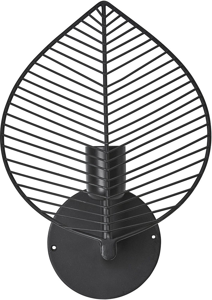 Lehdenmuotoinen seinävalaisin Elm on mattamustaa metallia.