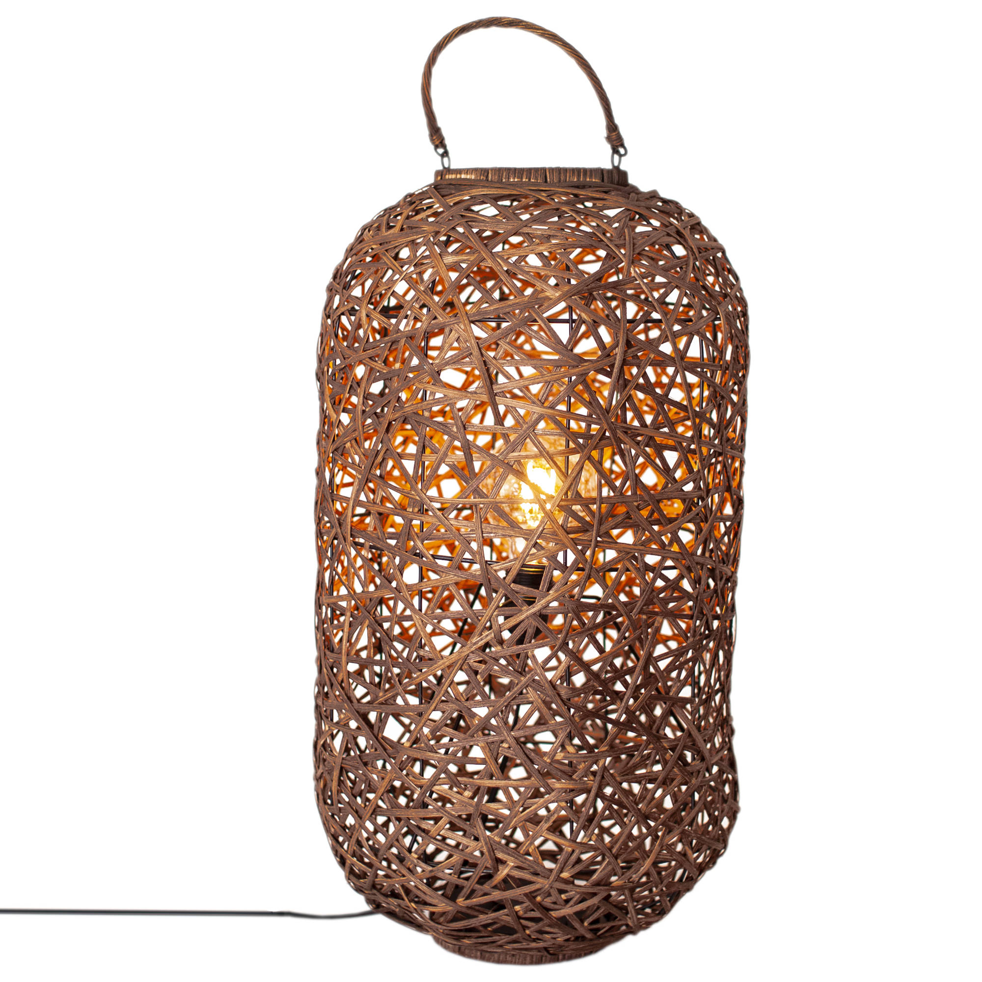 Diego on käsintehty lattiavalaisin rottingista, jonka onteloista valo säteilee kaunista lämmintä valoa. Valaisimen muoto muistuttaa lyhtyä sopien luomaan boheemia luonnonläheistä tunnelmaa. Valaisinta on helppo kantaa pehmeästä kahvasta ja siirrellä pitkän 2,5 metrin virtajohdon ansiosta. Yksinkertainen ja uniikki helposti sijoitettava valaisin on kaunis katseenvangitsija sekä lämmin tunnelmanluoja. Korkeus 65 cm Halkaisija 35 cm 1 x E27 max 60W, ei sisälly. Katkaisija johdossa, jonka pituus 2,5 m.