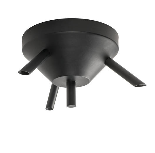 Valaisinjohtojen levittimillä varustettu kattokuppi antaa monia mahdollisuuksia yhdistää kolme riippuvalaisinta ryhmäksi. Erinomainen haaroitin Wirkkala K2-valaisimille. Valaisimet saa aseteltua sisustukseen sopivalla tavalla. Levittimet ohjaavat valaisimet visuaalisesti ja käytön kannalta sopivalle etäisyydelle toisistaan. Sinä päätät, onko valaisinkokonaisuus kuin kattokruunu tai matalalle sijoitettu katseenvangitsija. Kattokupin sisään mahtuvat kaikki tekniset osat. Sen ripustuskoukku kiinnitetään kattorasian koukkuun ja kiristysosa kierretään kiinni ilman ruuveja. Mukana metallikiinnike kattorasiaan kiinnitystä varten. Haaroitin käy sekä kiinteään että koukkukiinnitykseen. Musta metallirunko.