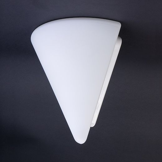 Kaunis, opaalilasinen seinävalaisin. Lasi tulee jokapuolelta kiinni pohjaosaan, jolloin lamppua ei pääse näkemään mistään.