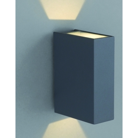 Led-seinävalaisin sisälle ja ulos. Siron kokonsa puolesta valaisin sopii hyvin myös sisätiloihin. Alumiinirunko, grafiitin harmaa. Led-valo tekee kiilamaiset kuviot ylös- ja alaspäin. korkeus 12,5cm ulkonema 9cm kiinteä LED 2,3w (sisältyy) kosteusluokitus IP44 Kiinteä asennus