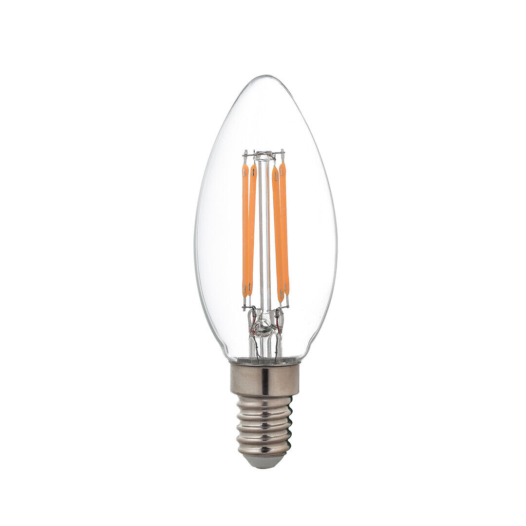 Kirkas- ja kynttiläkupuinen filamentti led-lamppu käy himmenninkatkaisijalle. Kirkaslasinen poltin käy hyvin esimerkiksi kristalli- ja lasivalaisimiin. Teho 4,5W Valon värilämpötila 2700K Kanta E14 Valon määrä max 470lumen Arvioitu paloaika 15000h Halkaisija 35 mm Pituus 97 mm