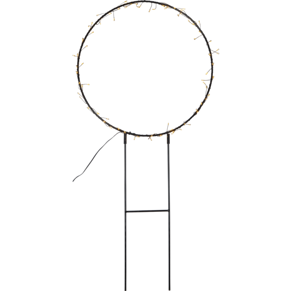 Koristesiluetti Barlumi sopii ympärivuotiseen koristeluun sisä- ja ulkotiloihin. 80 kpl extra lämmin valkoisia ledejä luovat renkaassa tyylikkäästi tunnelmaa. Musta metallikehikko ja johto. Halkaisija 40 cm Korkeus 84 cm Syvyys 1 cm Värilämpötila 2380K Pistotulppamuuntaja 3,2V DC 1,92W IP44. Pistotulppamuuntajan ja koristerenkaan väli 5 m. Ledien väli 2 cm Kotelointiluokka IP44