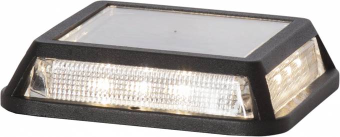 Aurinkokennolla toimiva Driveway-valaisin alumiinia/muovia. Lämmin valkoinen led-valon sävy. Valaisimella voi helposti merkata parkkipaikan, laiturin tai polun reunan. Valaisin kestää 3000kg painon. Kotelointiluokka IP44. 12 x kiinteä LED 0,06W. Paloaika n. 10 000 h. Valon määrä 10 lumen. Sis. ladattava NiMH-paristo, kesto yhdellä latauksella n. 6 h. Hämäräsensori.