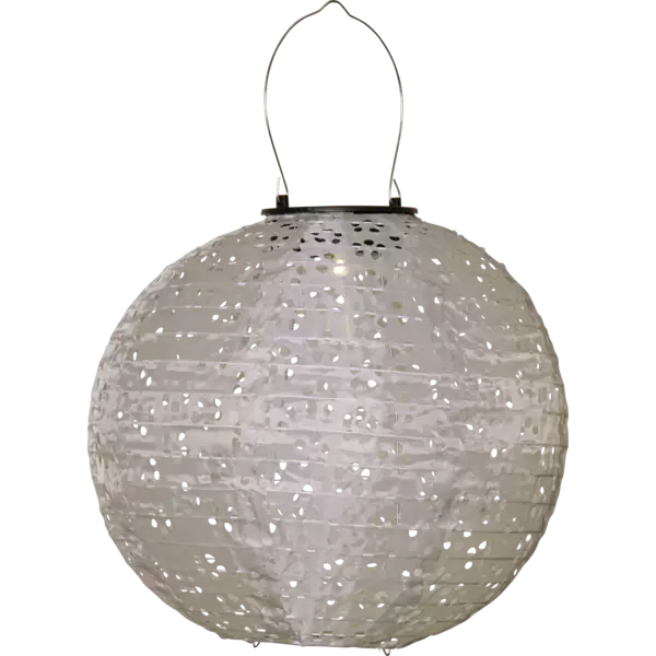 Festa 25 on aurinkokennolla toimiva polyesterista valmistettu koristelyhty. Lyhdyn kaunis reikäkuviointi luo hienoja varjoja ympärilleen hämärällä. Lyhdyssä on lämpimän valkoinen valo ja se sopii esimerkiksi puutarhaan, terassille tai parvekkeelle. Lyhty on joko beigen tai vihreän värinen. Sijoita lyhty niin, että sen aurinkopaneeli saa suoraa auringonvaloa. Kiinteä LED, lamppua ei voi vaihtaa. Ladattava 1 x AA NiMH 1,2V akku, sisältyy. Halkaisija 25 cm Huom! Aurinkopaneelin on oltava aurinkoon päin, jotta tuotteen paristo latautuu tehokkaasti Tuotteessa on hämäräsensori, valo palaa vain pimeään aikaan.