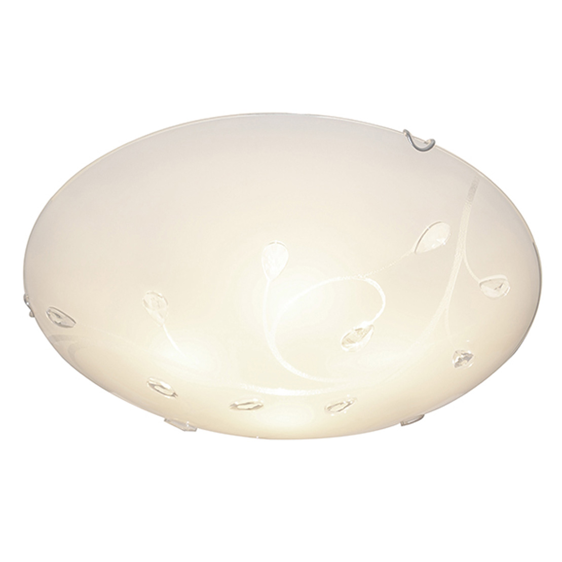 Kaunis lasiplafondi kristallisomisteilla. Hyvin valaiseva plafondi, valaisimessa 4 lamppua! Halkaisija 50cm 4xE27 40W max (ei sisälly), kaikki lampputyypit käyvät tähän valaisimeen. Kirkaspintaisilla lampuilla kristallit säihkyvät eniten. Helppo koukku- ja pistotulppakiinnitys, sis. pistotulpan