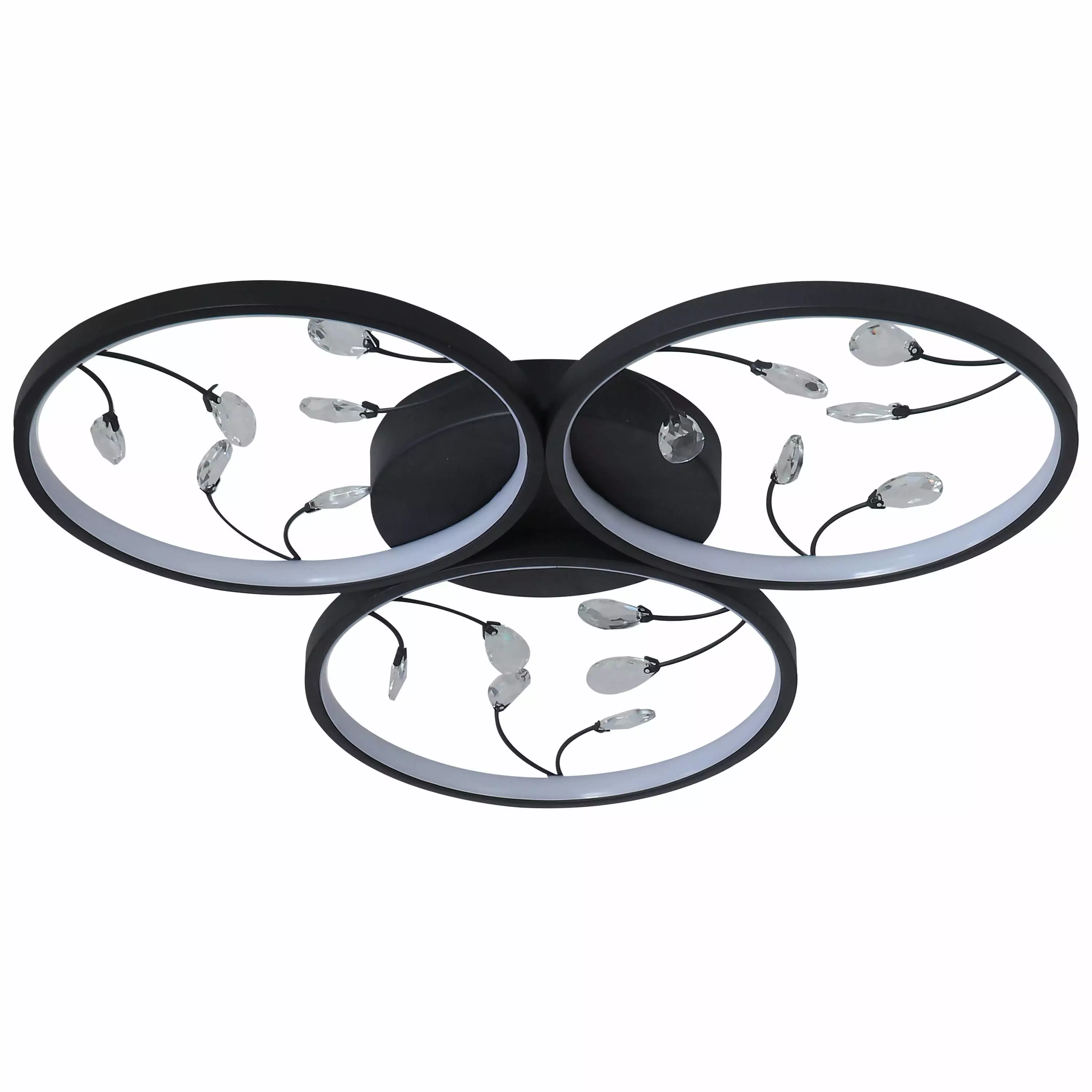 Mustarunkoinen Rings kattovalaisin on näyttävä, moderni plafondi. Valaisimessa on kolme 10W led- rengasta, joiden sisäpinnasta tulee valo, näin valo tulee epäsuorasti ja ei häikäise. Näyttävyyden viimeistelee kristalliset yksityiskohdat renkaiden keskellä. Valaisimen mukana tulee kaukosäädin, josta voi säätää valotehoa ja valon värilämpötilaa 3000K-6000K. Valaisimessa myös yövalotoiminto, jossa valo palaa himmeänä. Kiinteä led 3 x 10W, max 3600lumen. Halkaisija 62 cm Korkeus 8 cm Kiinteä asennus suoraan kattorasian reikiin.