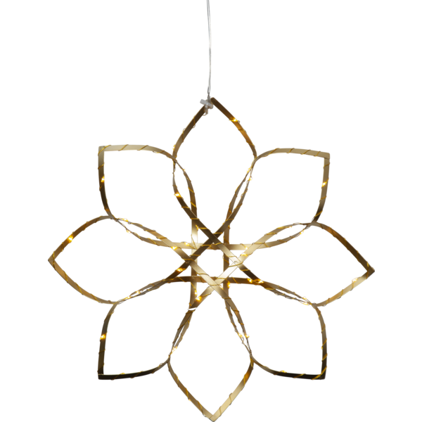 Kullanvärisestä metallinauhasta valmistettu tähti koristaa kauniisti sisätiloja. Huomaamaton led-nauha kiertää metallitähteä, nauhassa on 36 kpl kiinteitä lämminvalkoisia ledejä. Johdon...