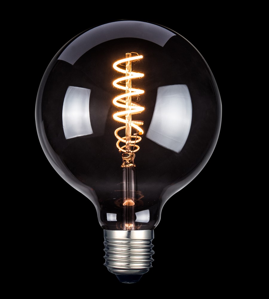 Tavallisella katkaisimella 3 eri tehoon säädettävä iso kokoinen led-lamppu. Lasikupu on tumma savulasi ja lamppu sopii erinomaisesti koristekäyttöön tuomaan tunnelmaa. Led-lamppu syttyy ensin...