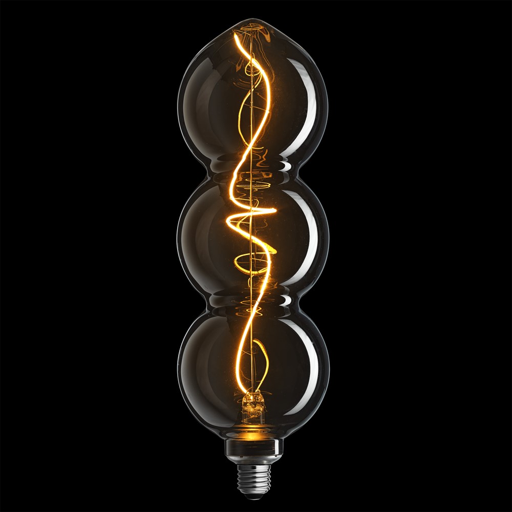 Tavallisella katkaisimella 3 eri tehoon säädettävä iso kokoinen led-lamppu. Lasikupu on tumma savulasi ja lamppu sopii erinomaisesti koristekäyttöön tuomaan tunnelmaa. Led-lamppu syttyy ensin...