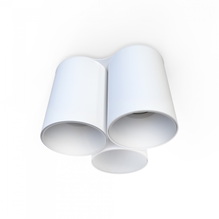 Moderni, spottimainen kattovalaisin, joka antaa valon suoraan alaspäin. Valkoinen, 3 pesäinen metallilieriö, jossa ulkonäköä antaa sisäpinnan lämmin kullanväri. Valo tulee lieriön sisältä...