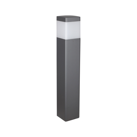 Grafiitin harmaa, matala pylväsvalaisin Chicago. Kantikas, tumman harmaa alumiinirunko ja valkoinen akryyli. Korkeus 65 cm Halkaisija 11 cm 1 x E27 max 20W, ei sisälly. Kotelointiluokka IP65 Kiinteä asennus.