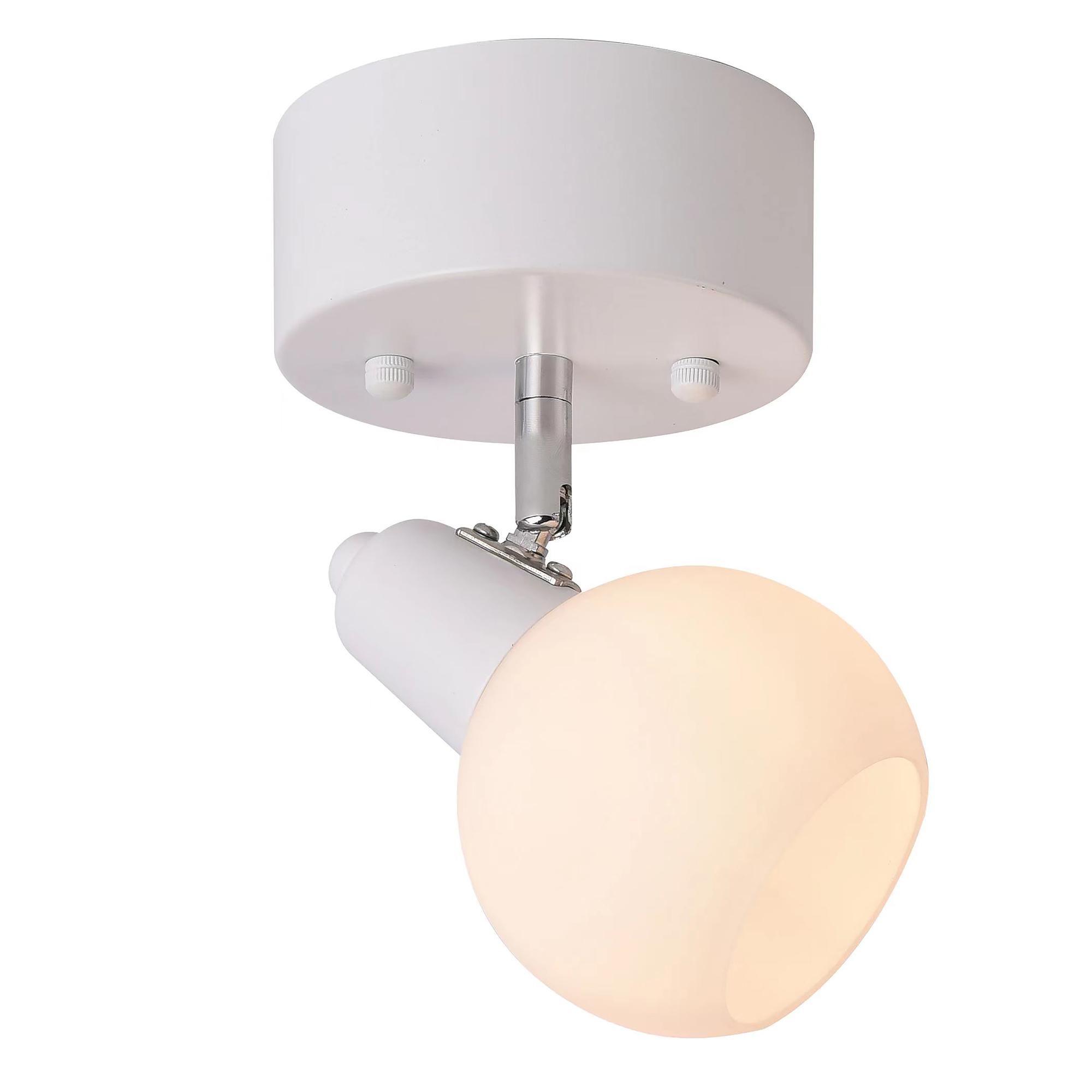 Valkoinen metallipohja ja valkoinen lasikupu.