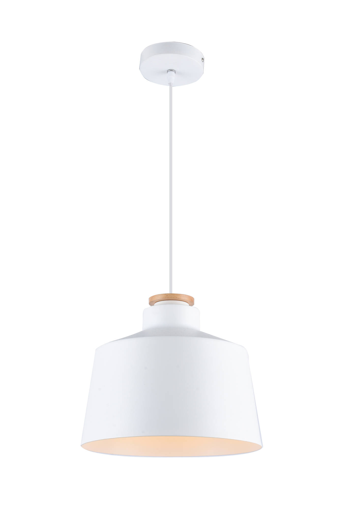 Scandinaavinen Margus riippuvalaisin sopii hyvin työtason tai pöydän päälle. Moderni malli antaa valon häikäisemättä alas päin. Valkoinen metallivarjostin, jossa puinen somiste viimeistelee ulkonäön. Halkaisija 30 cm Varjostinosan korkeus 25,5 cm Johdon pituus 100 cm 1 x E27 max 40W, ei sisälly. Yhteensopivat tuotteet välilehdeltä löydät sopivat polttimot valaisimeen. Valaisimen mukana on kiinteään asennukseen sopiva asennusosa, mutta alla olevassa YHTEENSOPIVAT TUOTTEET välilehdeltä voit ostaa kattokupin ja valaisinpistotulpan, jolloin valaisimen voi asentaa koukku- ja pistotulppaliitäntään.