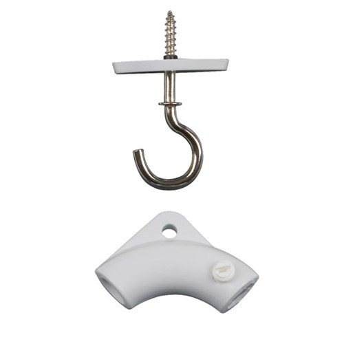 Ripustuskoukkusarja helpottamaan riippuvalaisimen siirtoa. Kulmakourun ansiosta johto kääntyy helposti ja kourussa on vedonpoisto. Setti sisältää koukun ja kulmakourun.