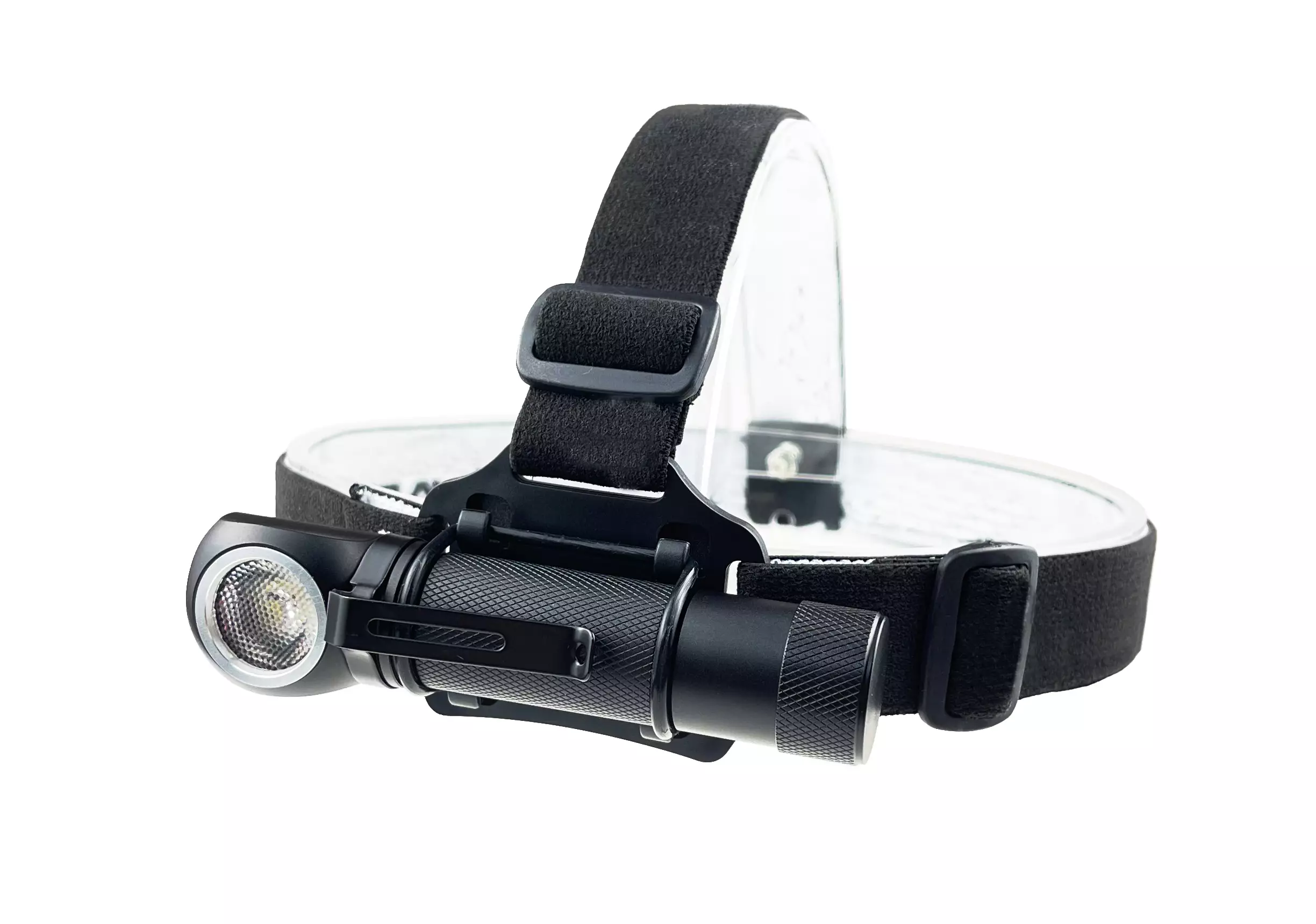Musta otsapanta ja valaisin on helppo irroittaa otsapannasta ja sitä voi käyttää normaalin, tehokkaan taskulampun tapaan.