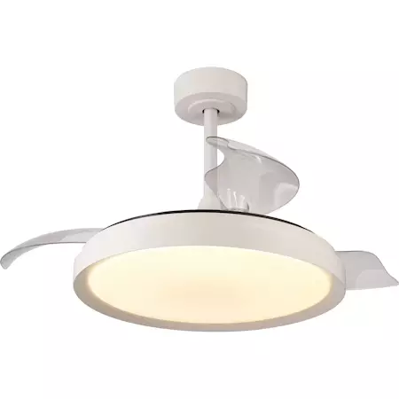 Tuuletinvalaisin voi olla myös huomaamaton! Mistral tuuletinvalaisimessa yhdistyy tehokkaasti sekä valaisu että tuuletus. Tuulettimen siivet ovat huomaamattomasti laskeutuneena kun tuuletin ei ole päällä ja nousevat tuulettimen käynnistyessä ilmavasti pyörimään. Tuuletin pyörii vain molempiin suuntiin eli kesällä voi pyörittää ilmaa viilentävästi ja talvella voi valita suunnan, joka tukee lämpimän ilman kiertoa. Valaisimen mukana tulee kaukosäädin, josta hoidetaan tuuletimen ja valon tehokkuuta sekä valon värisävyä. Valaisimessa on kaksi varren pituutta, asennuksessa voi vaikuttaa valaisimen korkeuteen. Kiinteä asennus. Tuulettimen teho 105m³/min, ihanteellinen 13-20 neliön huonetilaan. Läpinäkyvät siivet ja valon ympärillä oleva reunus ja runko on joko valkoinen, musta tai puun värinen. Korkeus 32,3 - 44,8 cm Halkaisija 106 cm siivet auki, 51,5 cm siivet kiinni. Kiinteä LED 50W, 3200lumen, 3000 - 6500K