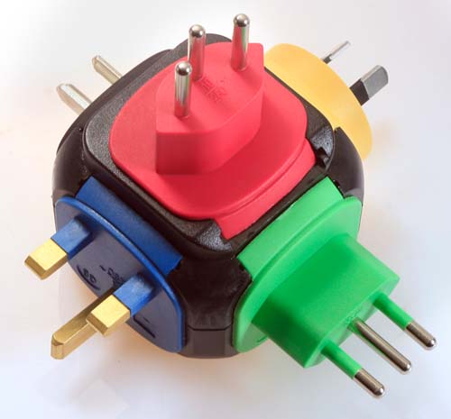 Sama matka-adapteri käy monessa eri maassa. AS Schwaben matka-adapterissa on viisi helposti vaihdettavaa modulia, joiden avulla se on käyttökelpoinen yli 100 maassa. Kompakti koko. Sisäkäyttöön. Jännite 230 V/16A.