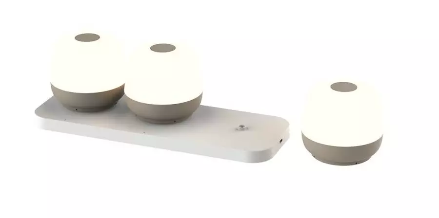 MoveGlow on ladattavien pöytävalaisimien setti. Setti sisältää 3 ladattavaa valaisinta ja yheisen latausalustan. Vaalea bees/hiekan värinen muovirunko. LED-valaisimissa on lämpimän valkoinen valo, ja niitä voi käyttää sekä sisä- että ulkotiloissa. Valaisimet saa kytkettyä päälle ja pois lyhyellä kosketuksella, pitkä kosketus taas himmentää valaisimen portaattomasti. Valaisinten akut voidaan kätevästi ladata latausalustan ja pakkaukseen sisältyvän USB-C-kaapelin avulla tai yksittäisen valaisimen suoraan USB-C-kaapelilla. Verkkovirtalaturi ei sisälly pakkaukseen. Valaisimet tulee ladata sisätiloissa. Akun latausaika on noin 2,5 – 3,5 tuntia, ja täydellä akulla valaisimet toimivat 4 tuntia kirkkaimmalla valoteholla. Halkaisija 9 cm Korkeus 8 cm Kiinteä led 3 x 1,2W, 3 x max 175lumen, 2700K. Valaisimen kotelointiluokka IP44