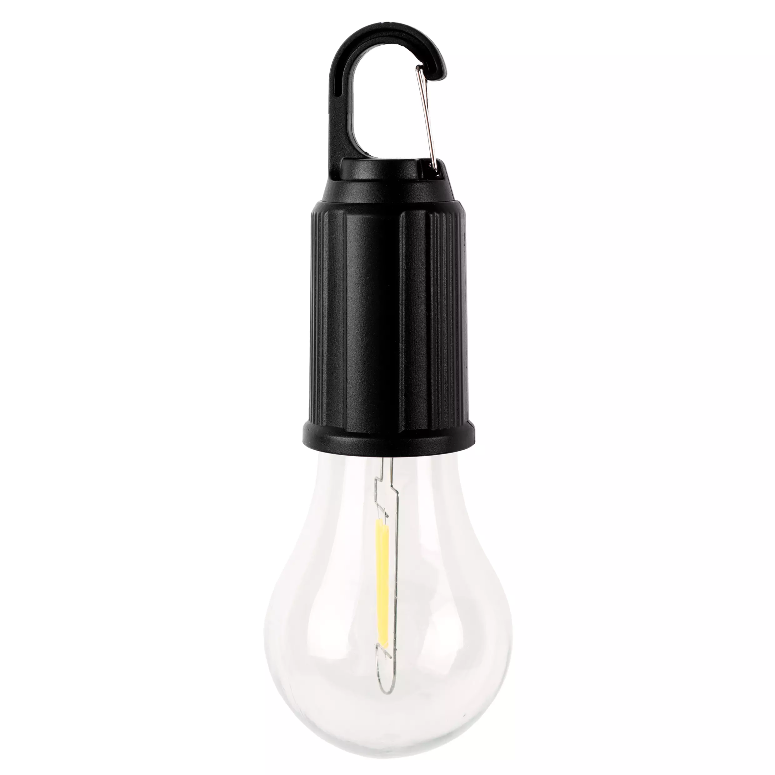 Hehkulampun näköinen led-lamppu ripustuslenkillä. Ladattava led-valo. Lampussa kolme valon voimakkuutta. Musta kantaosa, jossa ripustuslenkki. Lampun mukana tulee latausjohto USB-C. Max 100lumen, kolme voimakkuutta 100% - 50% - 25% Latausaika 1h Toiminta-aika 3h täydellä teholla. Halkaisija 62 mm Pituus 180 mm