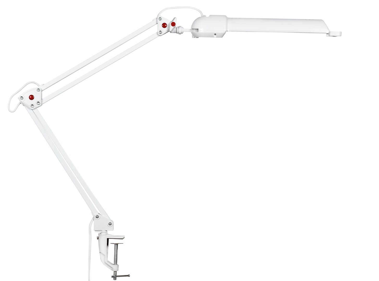 Klassinen nivelletty työpöytävalaisin on hyvä valinta toimiston, kotitoimiston tai koululaisen työskentelyvaloksi. Valaisimessa on ergonominen muotoilu: valaisinrunko on liikkuva ja valaistuskulman ja -asennon säätö on helppoa. Nivelletyn valaisinrungon ja varjostimen avulla vähennät häikäisyä ja helpotat työskentelyergonomiaa, kun suuntaat valon sinne missä sitä tarvitaan. Kiinnitä valaisin tukevasti pöytälevyn reunaan ruuvattavalla pöytäkiinnikkeellä. Valonlähteenä on vaihdettava led-lamppu. Väri: Valkoinen Runko: metallia/muovia Korkeus: 62cm Liitosjohdon pituus valaisimelta: 185cm Valaisinosan pituus: 33cm Lampputyyppi: Led-pistokantalamppu G23 Valonlähde sis: Kyllä 7,2W 670 lumen 3000 K