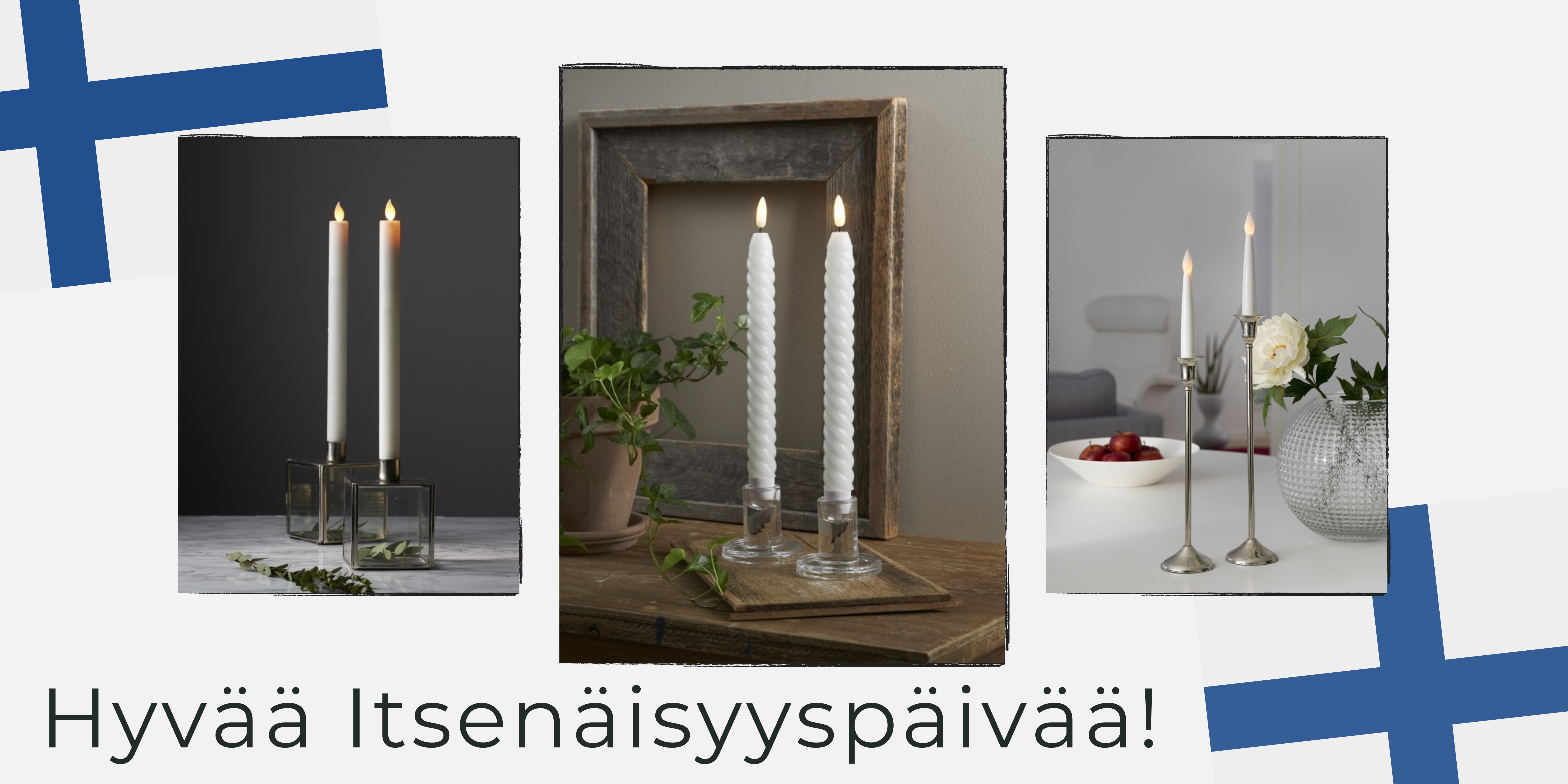 - Erilaiset patterikäyttöiset kynttilät ja kyntteliköt