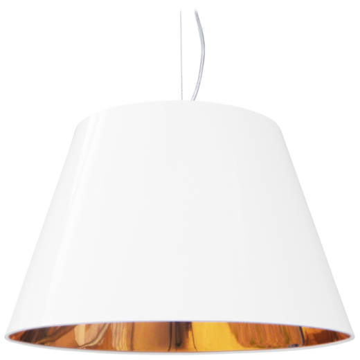 Moderni Viola -riippuvalaisin. Valkoinen muovivarjostin, jossa kullanvärinen sisäpinta antaa kauniin lämpimän sävyn valolle. Valaisin antaa valon alas- ja ylöspäin, varjostin ei laske läpi valoa. Kirkas johto, vaijeriripustus, jossa vaijerin pituutta voi säätää. Helppo koukku- ja pistotulppakiinnitys. Varjostimen alahalkaisija 40cm Varjostimen ylähalkaisija 25cm Varjostimen korkeus 26cm Max korkeus katosta 130cm 1xE27 max 60w, ei sisälly, kaikki lampputyypit käyvät tähän valaisimeen.