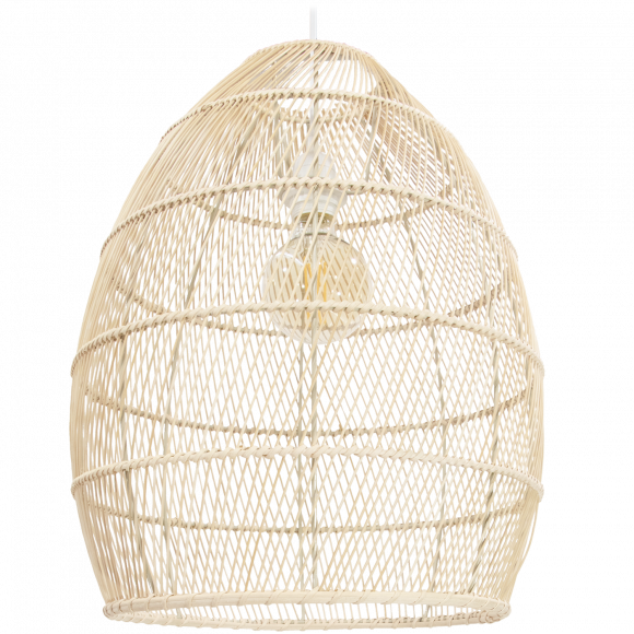 Näyttävä, rottinkinen Renee riippuvalaisin luo tilaan lämmintä tunnelmaa. Rottinkisen varjostimen aaltomainen muotoilu korostaa luonnollista tyyliä ja kiinnittää huomion. Valaisin sopii upeaksi yleisvalaisimeksi moneen eri tilaan. Helppo kiinnittää kattokoukkuun ja kytkeä valaisinpistotulpalla. Rungon materiaali rottinkia. Varjostimen korkeus 45 cm Halkaisija 40 cm Johdon pituus 100 cm 1 x E27 max 40W, ei sisälly. Yhteensopivat tuotteet välilehdeltä löydät sopivat polttimot valaisimeen.
