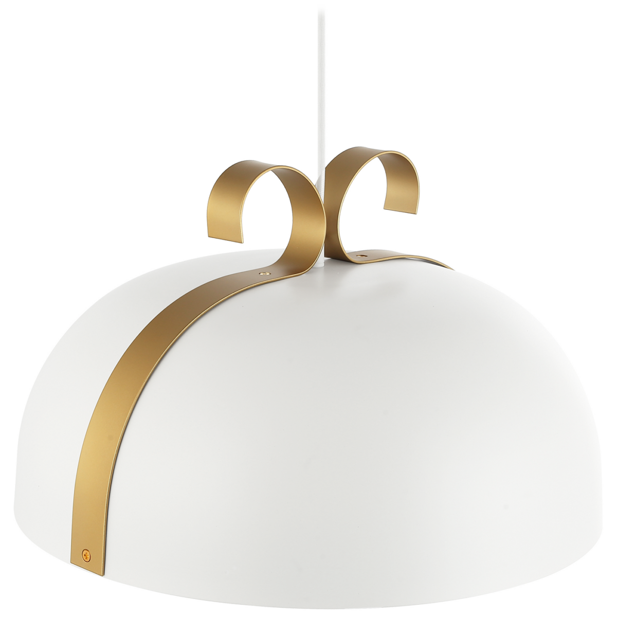 Jenni Inkeroisen muotoilema tyylikäs riippuvalaisin Rusetti. Valaisimessa on metallinen, pelkistetty kupu. Valkoinen metallivarjostin, kullanväriset somisteet. Halkaisija 40 cm Varjostimen korkeus 25 cm Johdon pituus 200 cm Koukku- ja pistotulppakiinnitys. 1 x E27 max 10W, ei sisälly.